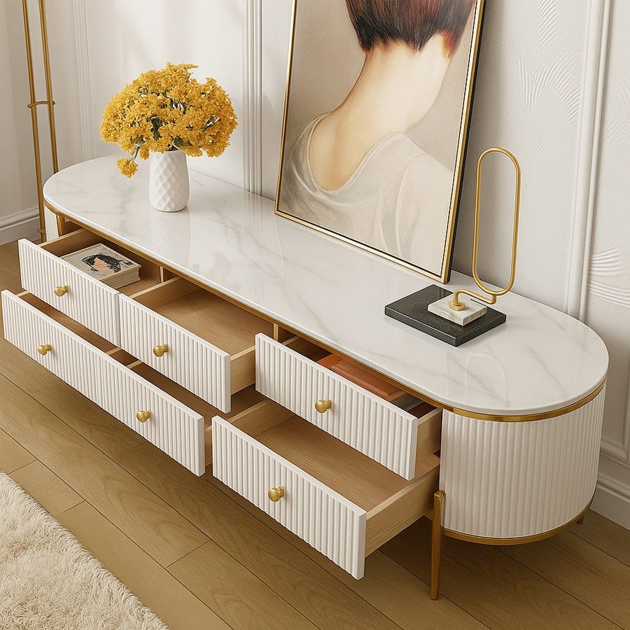 Kệ tivi DPKTV06 là sự kết hợp hoàn hảo giữa phong cách sang trọng và tinh tế, phù hợp với những không gian nội thất mang hơi hướng hiện đại, tối giản. Bề mặt đá ceramic trắng vân mây mang đến cảm giác nhẹ nhàng, sạch sẽ, đồng thời có khả năng chống thấm, chống xước tốt. Thiết kế bo cong mềm mại cùng hệ tay nắm và chân inox mạ vàng tinh xảo chính là điểm nhấn sang trọng cho mọi phòng khách.