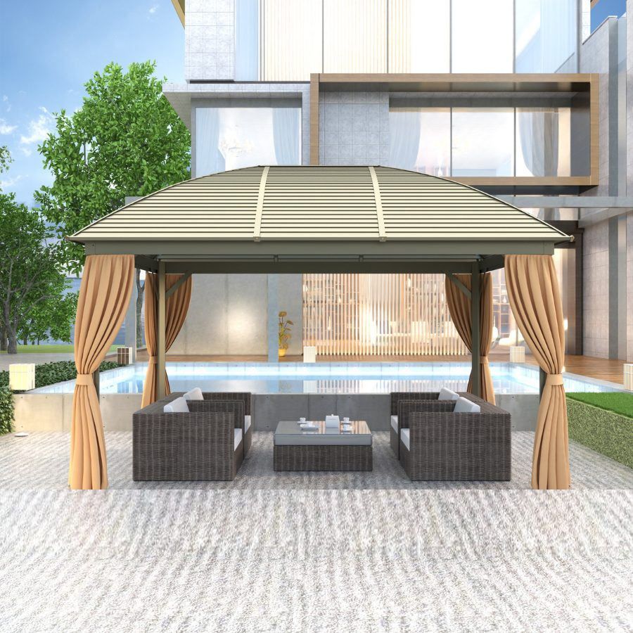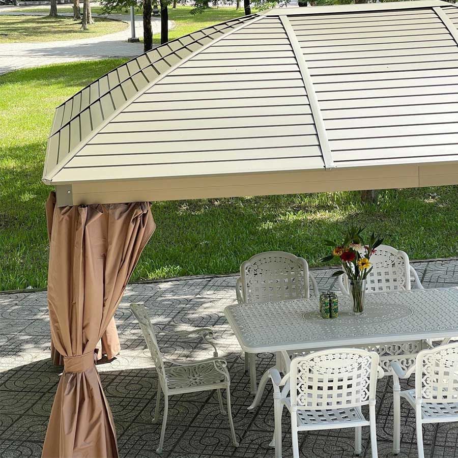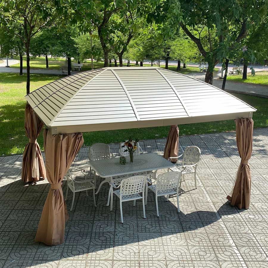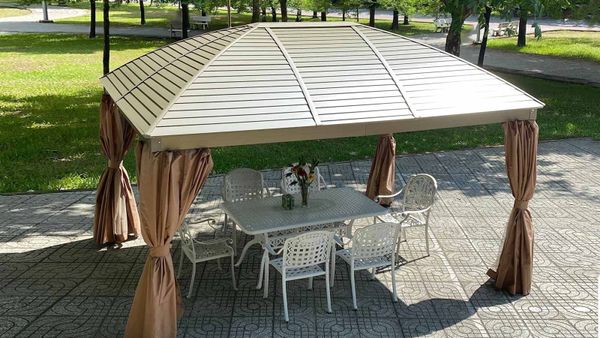 Nhà chòi sân vườn GZB4 là sự lựa chọn hoàn hảo để nâng cấp không gian ngoại thất, tạo nên khu vực thư giãn lý tưởng. Thiết kế hiện đại với khung nhôm sơn tĩnh điện chắc chắn, mái thép mạ kẽm chịu lực, giúp chống chịu tốt với điều kiện thời tiết khắc nghiệt. Hệ thống mành che bằng Polyester chống nắng hiệu quả, kết hợp với mành chống muỗi mang lại sự thoải mái tối đa cho người sử dụng.