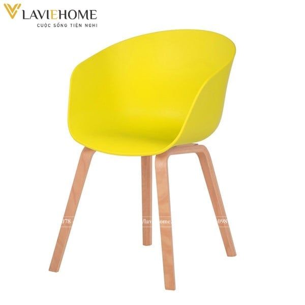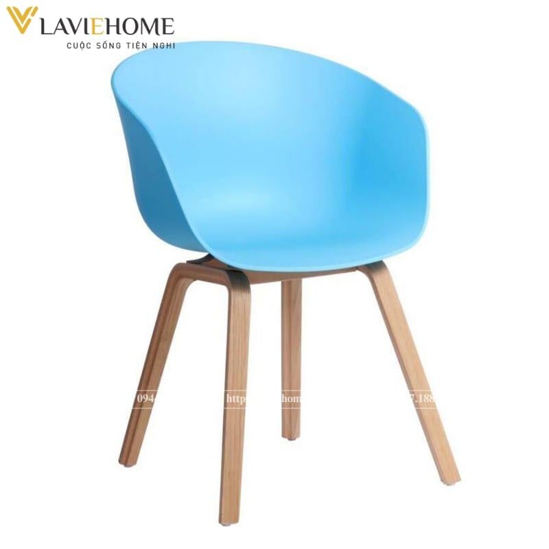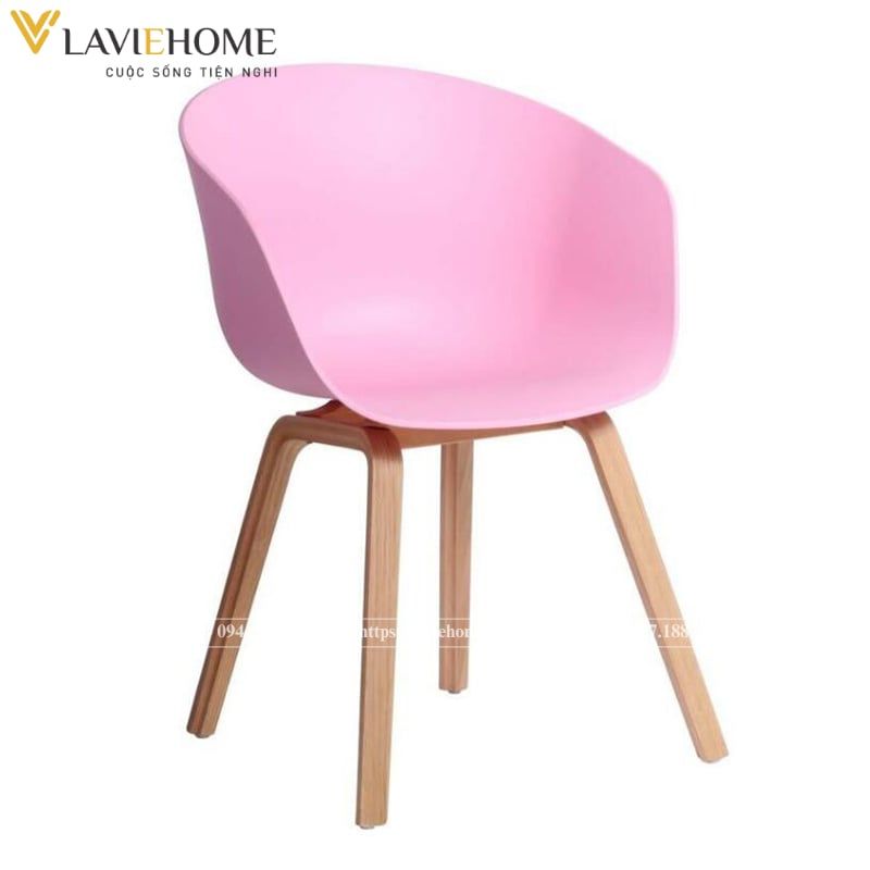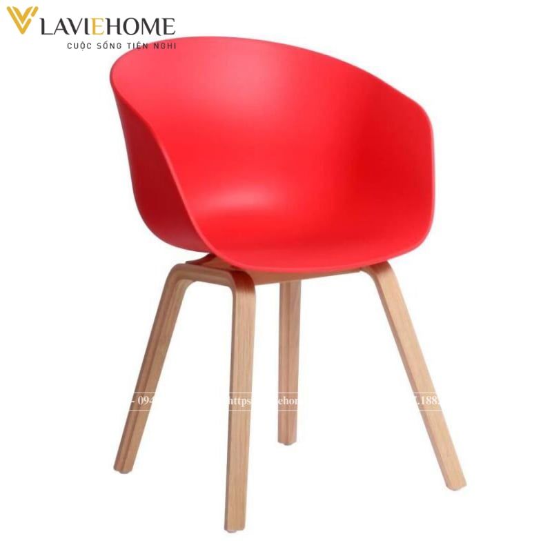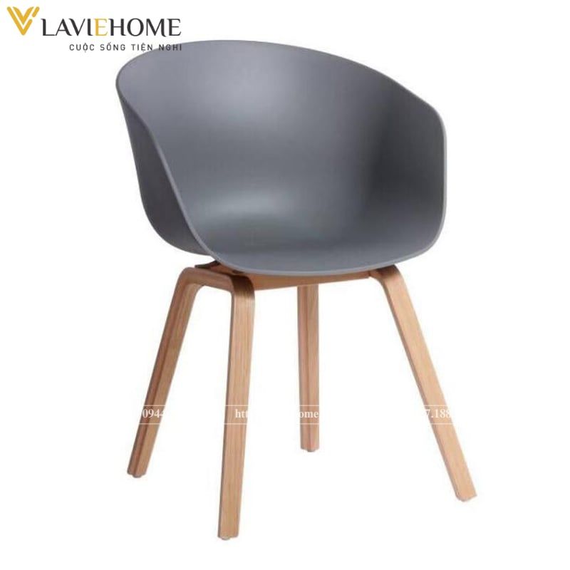 Thiết kế đơn giản nhưng vô cùng hiện đại, lịch thiệp, tiện dụng với phần lưng ghế đúc nguyên khối từ nhựa PP cao cấp bo tròn lên nửa lưng ôm lấy toàn bộ phần eo, có chổ để tay cho người ngồi mang đến sự thoải mái, an toàn nhất cho người sử dụng; Phần chân ghế được chế tạo từ thép sơn tĩnh điện giả gỗ chắc chắn, hài hòa với thiết kế của phần lưng ghế.