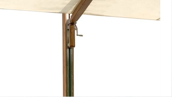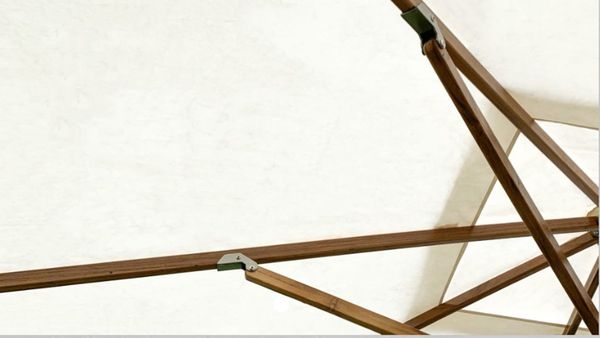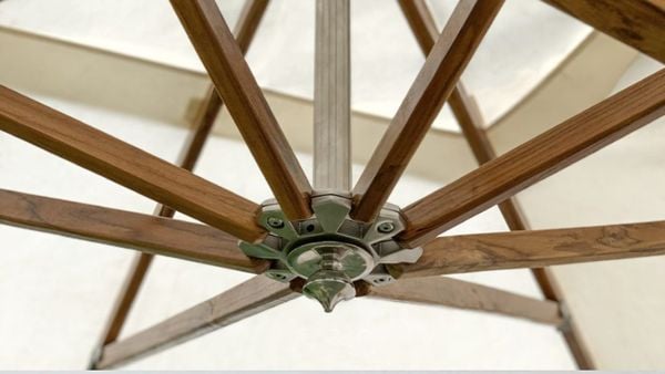 Khung dù được làm từ gỗ Teak cao cấp – loại gỗ tự nhiên có độ bền cao, chống thấm nước, chịu được thời tiết khắc nghiệt và không bị mối mọt. Áo dù có nhiều lựa chọn chất liệu với khả năng chống thấm, chống tia UV cao, đảm bảo độ bền màu lâu dài.