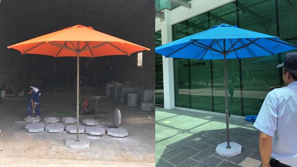 - Đế dù: Đá granite tự nhiên nguyên khối, đường kính 50mm, nặng 35kg