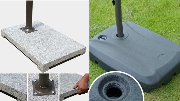 - Đế nhựa có bánh xe, có thể đổ nước/cát (trọng lượng tối đa 100kg).