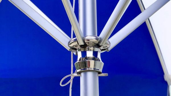 Ô tròn cánh cung nhôm LHOD06 sở hữu thiết kế thanh lịch với thân dù bằng nhôm anod màu bạc cao cấp, mang lại độ bền vượt trội và chống ăn mòn tối ưu ngay cả trong môi trường gió biển. Tay quay ròng rọc bằng inox 316 giúp thao tác nâng hạ ô nhẹ nhàng và thuận tiện.