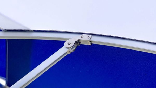 Vải dù cao cấp Sunbrella nhập khẩu từ Mỹ đảm bảo khả năng chống tia UV, chống thấm nước và giữ màu sắc bền đẹp theo thời gian. Các chi tiết kết nối như bu-lông, chóp cầu, ròng rọc đều làm từ inox 316 sáng bóng, giúp tăng độ bền và tính thẩm mỹ cho sản phẩm.