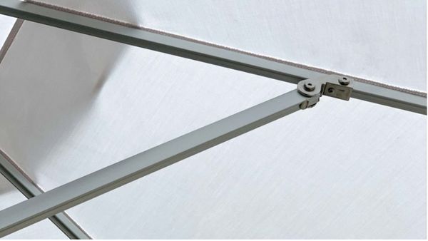 Hệ thống tay quay ròng rọc bằng inox 316 giúp việc nâng hạ dù trở nên dễ dàng và mượt mà. Các thanh kèo dù cũng được làm từ nhôm anod chắc chắn, đảm bảo sự vững chãi khi sử dụng. Vải dù Sunbrella nhập khẩu từ Mỹ giúp ô có khả năng chống tia UV, không phai màu và có độ bền cao theo thời gian.