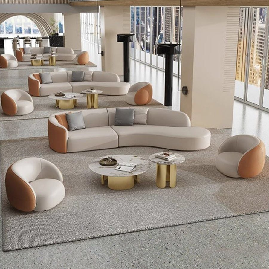 - Dễ kết hợp với bàn trà tròn, thảm trung tính và tranh tường nghệ thuật