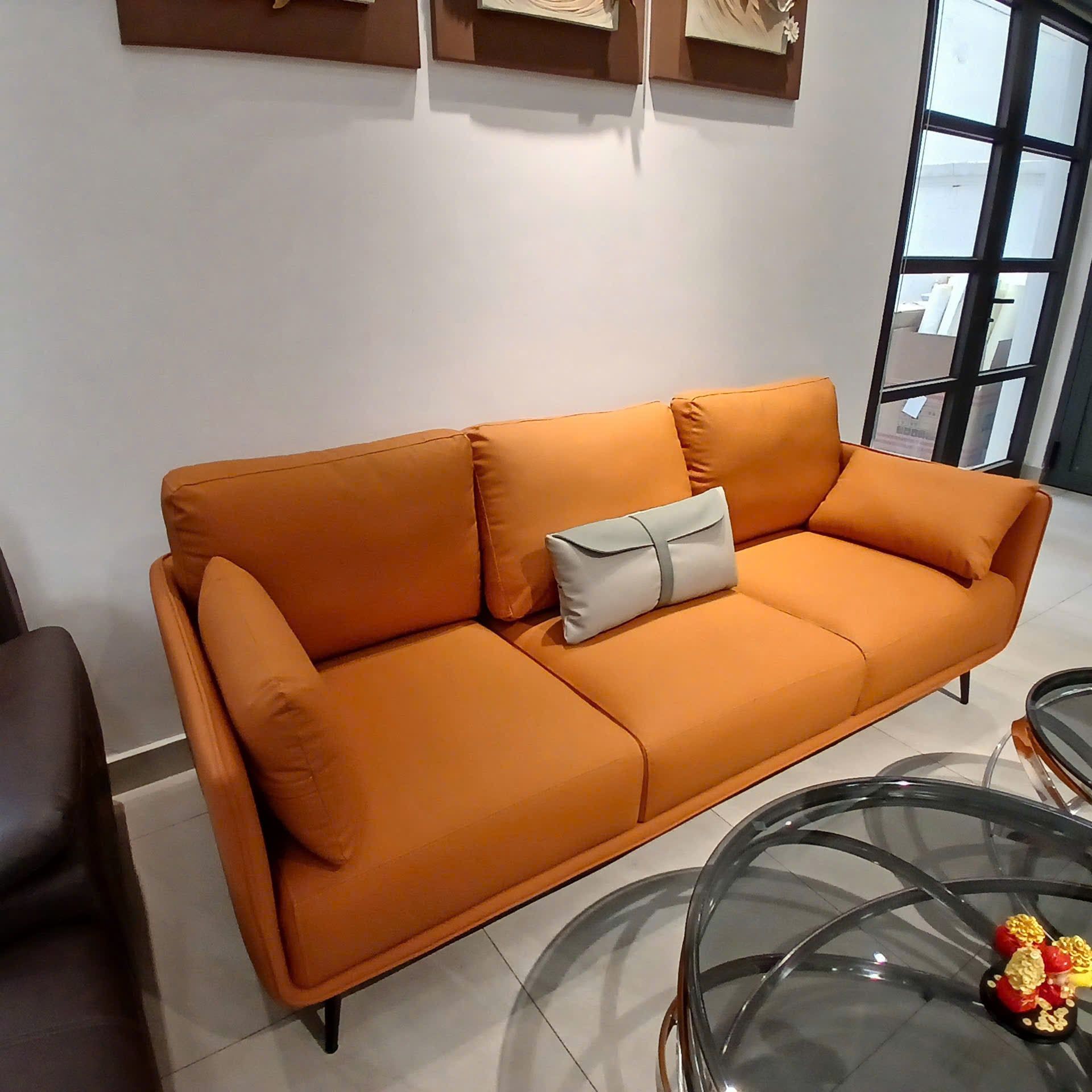 Sofa da cao cấp XA01 sở hữu thiết kế hiện đại, đường nét vuông vức gọn gàng kết hợp gam màu trẻ trung, tạo điểm nhấn nổi bật cho không gian phòng khách, căn hộ chung cư hoặc nhà phố phong cách tối giản. Kiểu dáng sofa băng dài giúp tối ưu diện tích, mang lại cảm giác rộng rãi và thoáng đãng cho không gian sống.