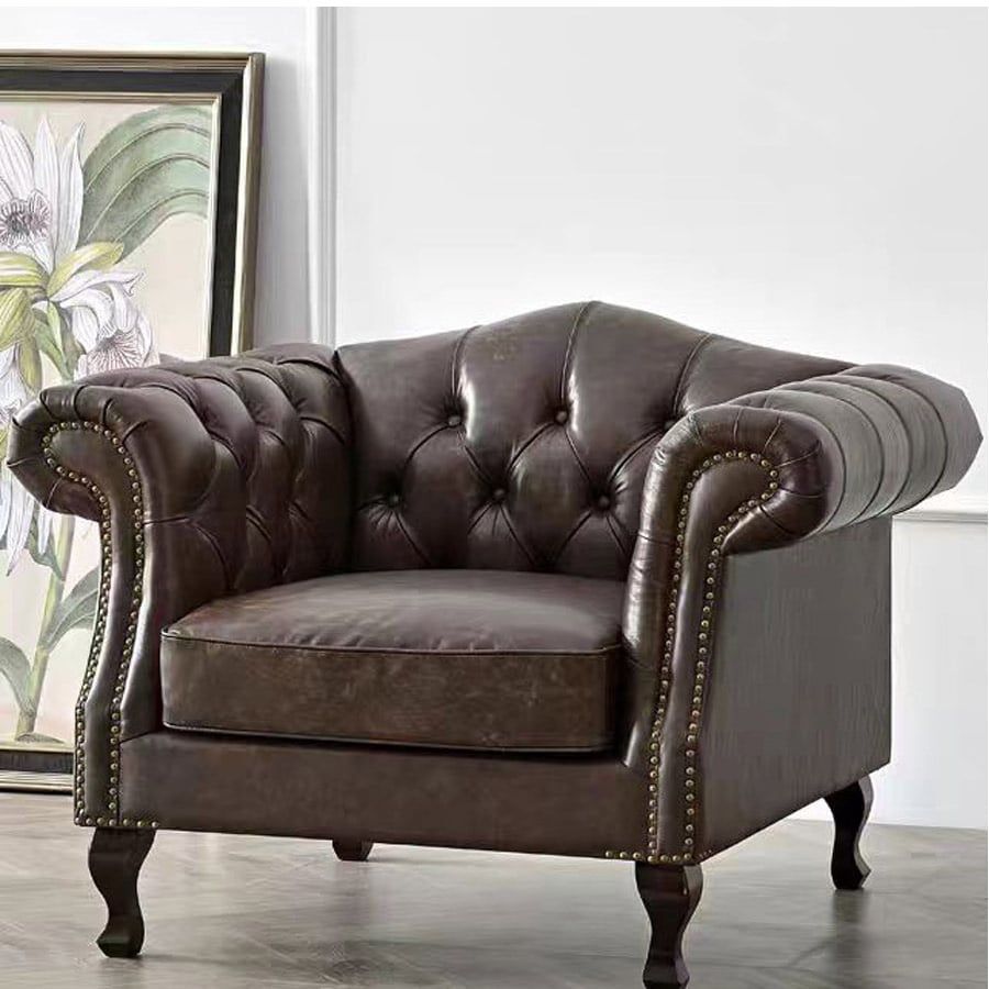 Kiểu dáng đối xứng, chắc chắn cùng tone da nâu cổ điển giúp mẫu ghế này dễ dàng trở thành trung tâm thu hút trong phòng khách biệt thự, căn hộ cao cấp hay showroom sang trọng.