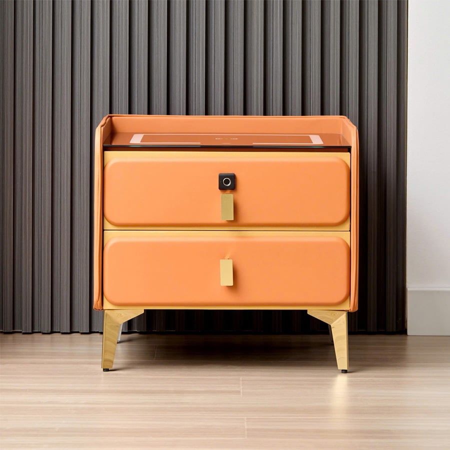 Chất liệu: Thân bọc da cao cấp, khung gỗ chắc chắn, mặt kính cường lực cảm ứng
