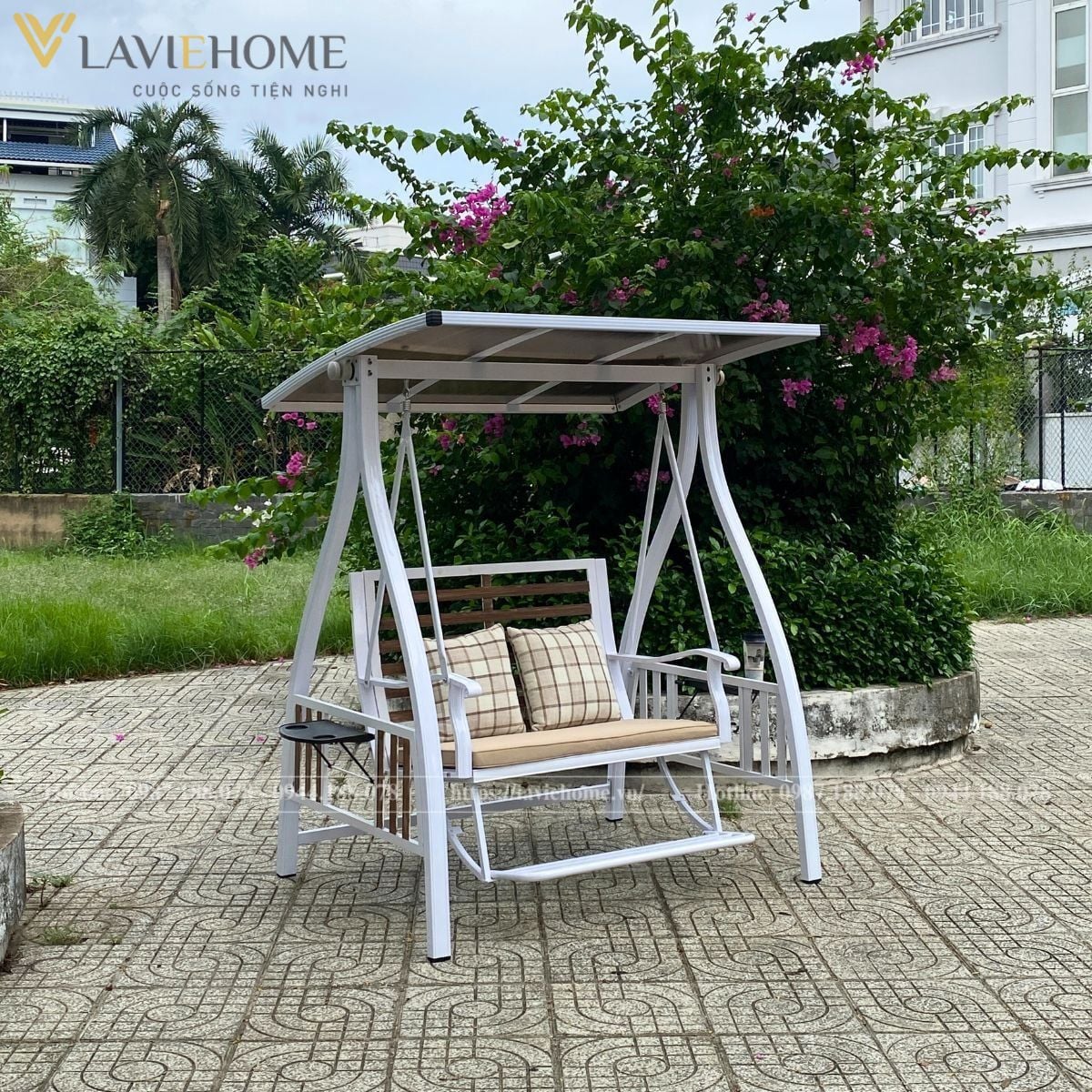Còn gì phù hợp hơn một chiếc xích đu nhôm đúc . Sang trọng có sang trọng, tinh tế có tinh tế, hút mắt bất kì vị khách nào ghé thăm.