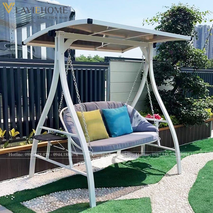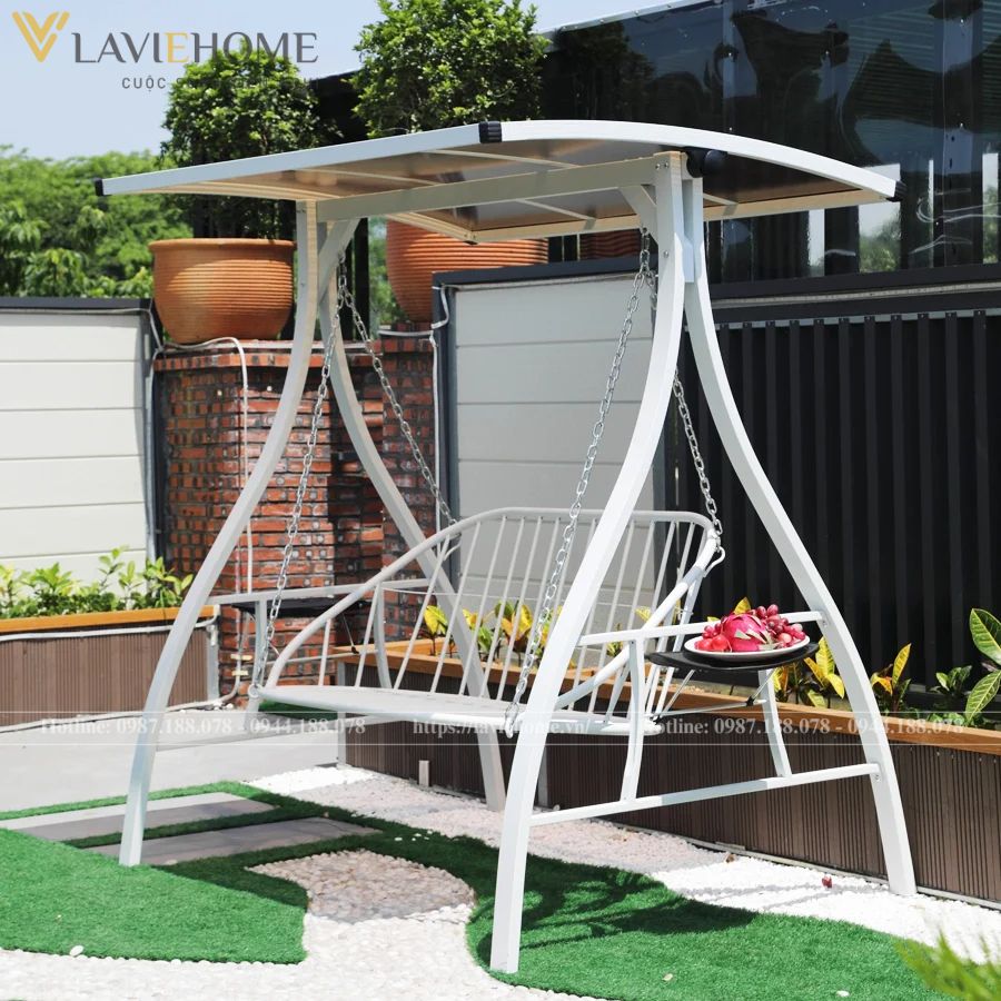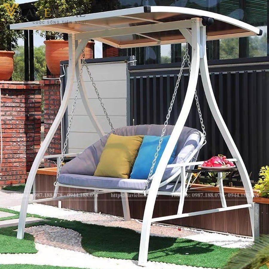 Còn gì phù hợp hơn một chiếc xích đu nhôm đúc . Sang trọng có sang trọng, tinh tế có tinh tế, hút mắt bất kì vị khách nào ghé thăm.